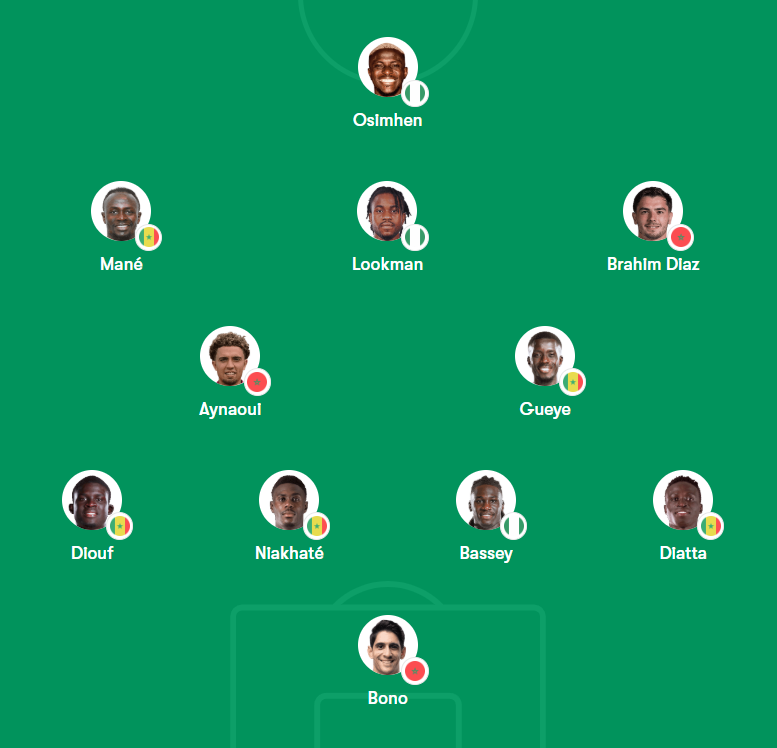 Seules trois nations sont représentées : le Sénégal, le Maroc et le Nigéria. Toutes trois demi finalistes, ce sont les équipes qui ont été un cran au dessus collectivement et ont donc mis en valeur leurs individualités.