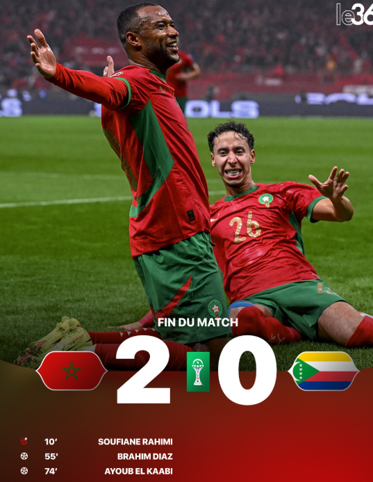 Match d’ouverture de la CAN 2025 à Rabat entre le Maroc, pays organisateur, et les Comores dans le groupe A. Sous un déluge hivernal, les Marocains se sont imposés deux buts à zéro grâce à Brahim Diaz et Ayoub El Kaabi. Ce dernier a d’ailleurs peut-être déjà inscrit le but du tournoi. Un bon départ pour les grands favoris !