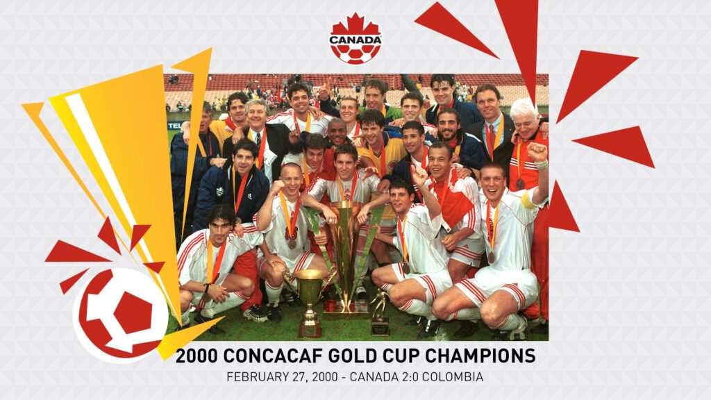 Il faudra attendre le nouveau millénaire pour voir le plus beau fait d’arme Canadien : la victoire à la Gold Cup 2000 où ils finissent deuxièmes de leur poule derrière le Costa-Rica puis vont faire un parcours rêvé ensuite. Elimination des Mexicains (qui avaient des absents majeurs) en quart de finale en prolongations, une victoire contre Trinité-et-Tobago 1-0 en demi-finale et une victoire finale 2-0 contre la Colombie, invitée de l’édition. L’équipe, portée par le gardien Craig Forrest et l’attaquant Carlo Corrazin, aura fait preuve d’une combativité hors norme et d’un jeu rapide intéressant.