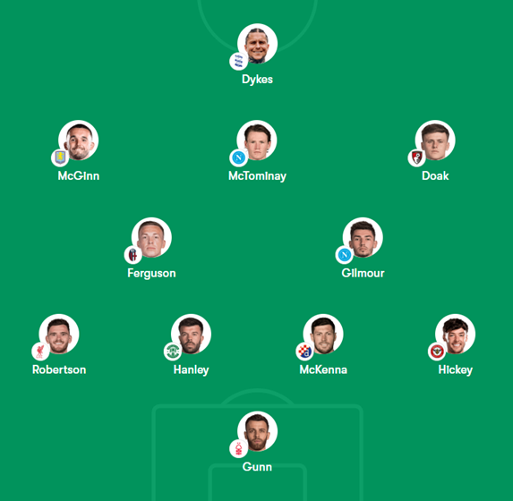 - Ryan Christie à la place de Ferguson ou Gilmour, des fois sur l’aile gauche replaçant McGinn au milieu (moyen).