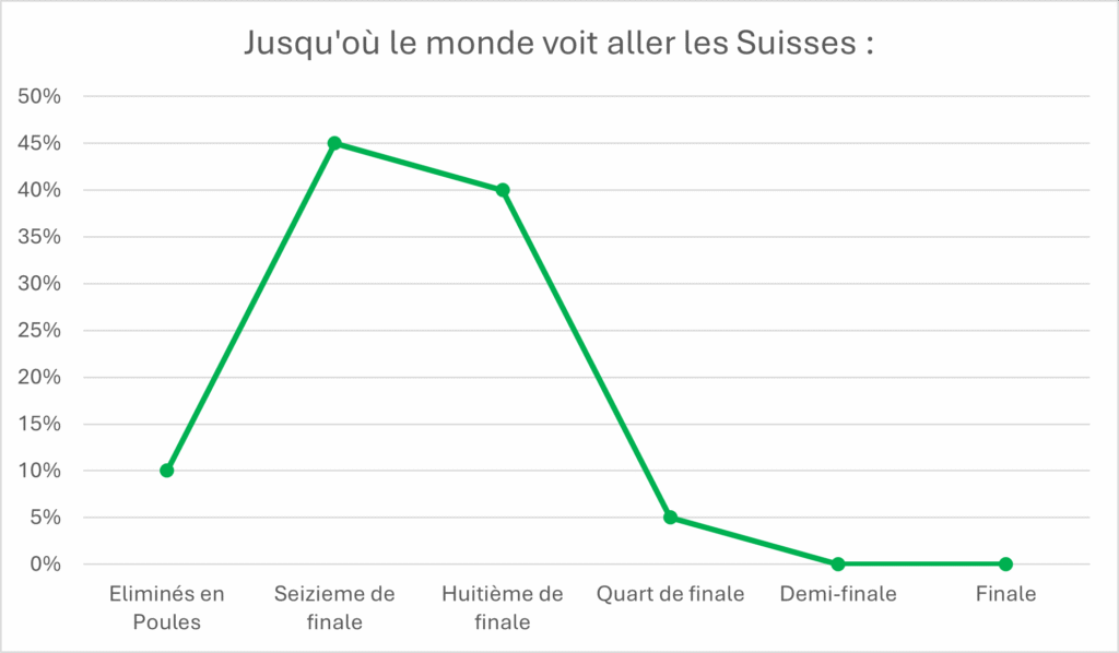 Néanmoins, le manque de grosse tête d’affiche dans l’effectif ainsi que le poids de nation moyenne pèse encore dans l’imaginaire mondial et la Nati sera donc un peu sous-estimée par le public généraliste.
