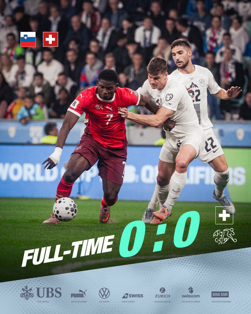Premier accro pour la Nati qui n’a pas réussi à vaincre l’équipe d’Oblak et de Sesko dans leur antre à Ljubjana. Avec une défense solide et cohérente, les Slovènes ont vraiment donné du fil à retordre à l’équipe Suisse car ces derniers n’ont pas réussi à se procurer suffisamment d’occasions franches pour débloquer la situation. Dans le même temps, le Kosovo est allé gagner en Suède et revient à 3 points de la Nati.