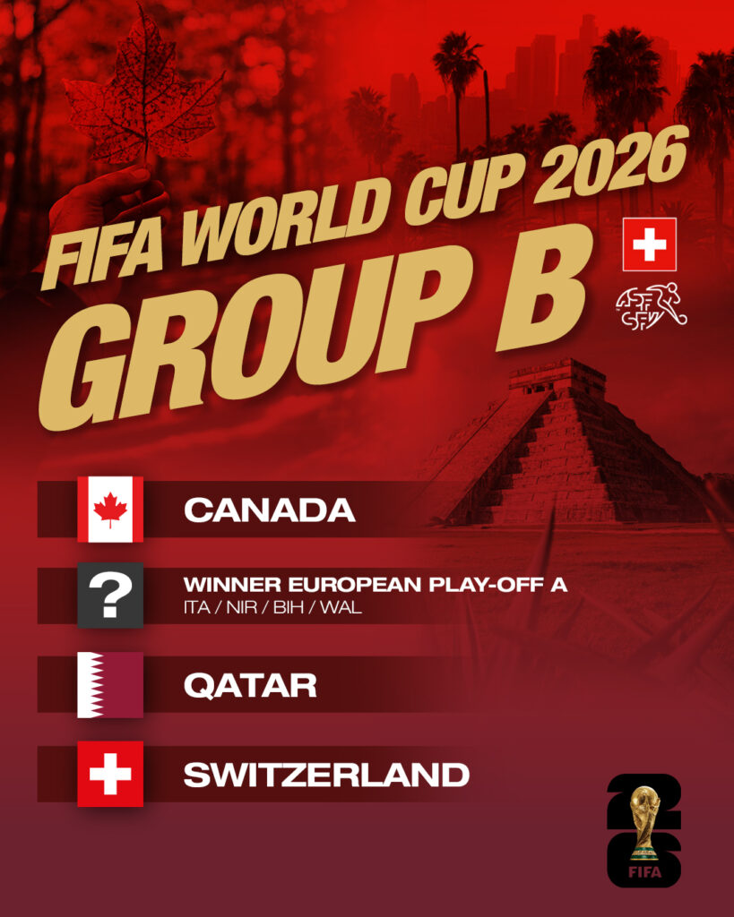 La Nati a hérité d’un tirage plutôt clément pour cette édition nord-américaine puisqu’ils ont tiré un pays hôte dans le chapeau A : le Canada de Jesse Marsch. Les Rouges Canadiens seront la principale équipe rivale pour la première place selon nous mais l’équipe de Yakin dispose tout de même d’une longueur d’avance grâce à l’homogénéité de son effectif et son expérience du haut niveau international. Tout d’abord, ils joueront le Qatar, match abordable même si le pays du Golfe se développe depuis sa Coupe du Monde. Ensuite match plus difficile contre le gagnant du barrage Européen en Mars. Donc possiblement l’Italie qui ferait son retour à la Coupe du Monde, tant attendu depuis 2014. Les trois autres nations Européennes ne seront pas faciles à battre pour autant. Et enfin le Canada à Vancouver dans un match où se jouera peut-être la première place si la Nati a fait le boulot avant. Un groupe abordable mais où chaque match peut-être piège.